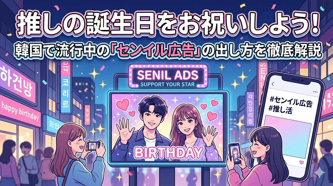 韓国の推し活文化において、いまや欠かせない存在となっているのが「センイル広告(誕生日広告)」です。「センイル」とは韓国語で「誕生日」のこと。ファンが自ら出資し、地下鉄の駅や街中の大型ビジョンに推しの誕生日をお祝いする広告を掲出するこの文化は、いまや日本を含む世界中のファンに広がっています。